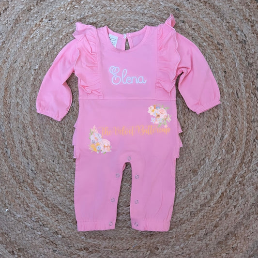 Long Sleeve Ruffle Romper with Embroidered Name or Monogram
