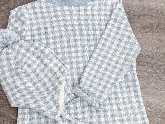 Pink or Blue Plaid Gingham Roll Neck Sweater with Bow Monogram