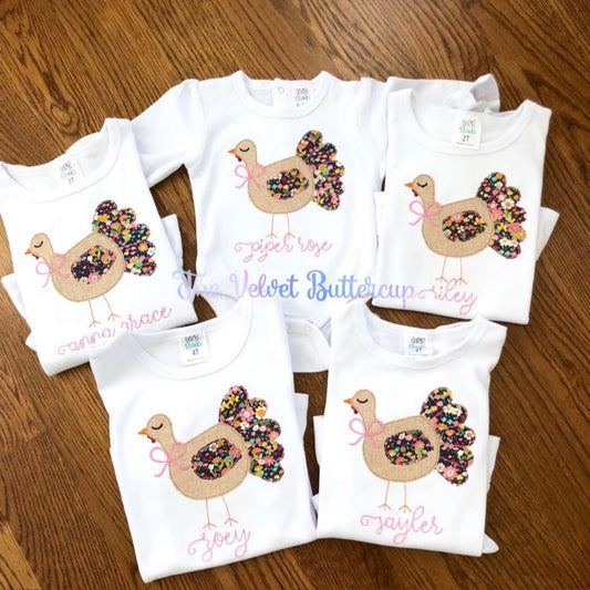 Turkey Appliqué Tee with Floral Bow