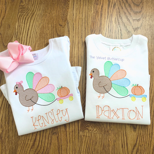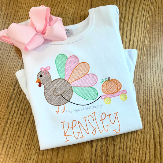 Turkey Pulling Pumpkin Wagon Girls Shirt