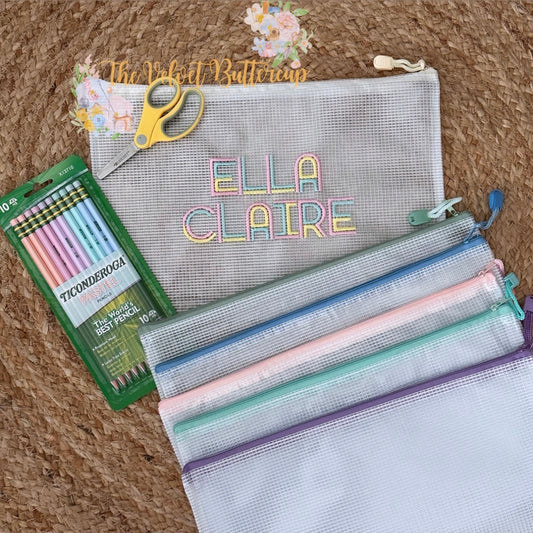 Zip Bag or Pencil Pouch with Embroidered Name or Monogram or Wording