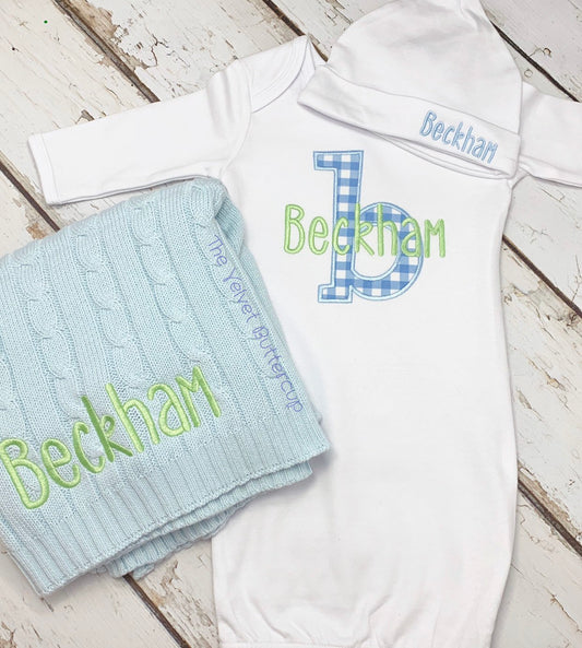 Monogrammed Baby Gown with Bow
