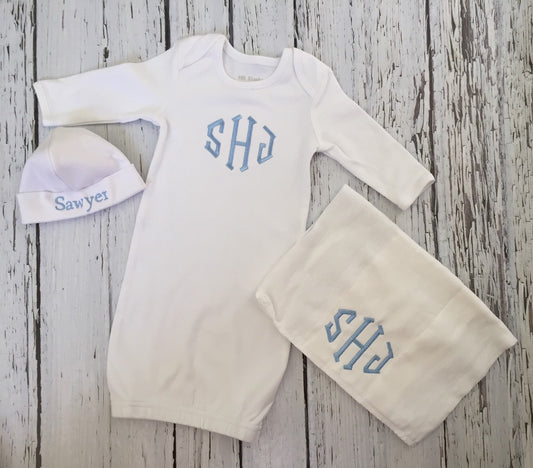 Monogram Baby Shower Set - Monogram Baby Set - Monogram Baby Gown Set