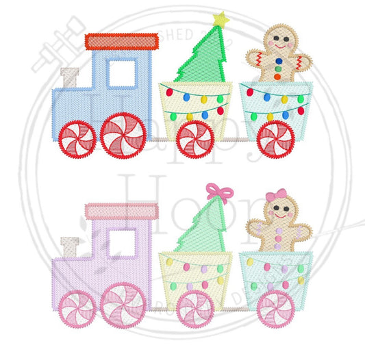 Christmas Train Embroidered Tee with Name Personalized