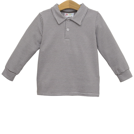 Michael Polo Long Sleeve Romper - Light Blue Stripe