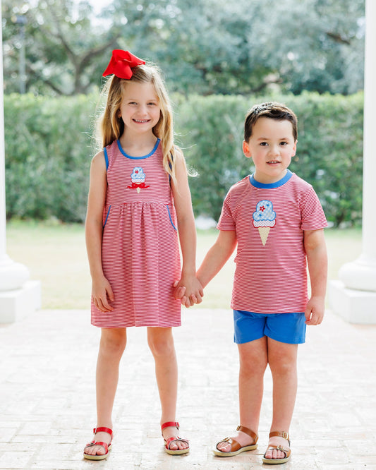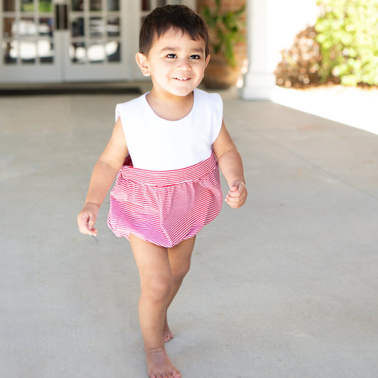 Gracie Ruffle Short Set - Red Stripe and Navy